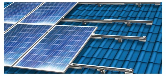 The variable height of the system mounts enable a level PV array even if the roof surfaces are uneven.
