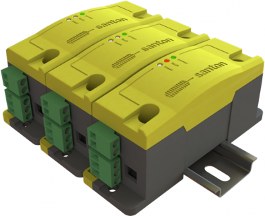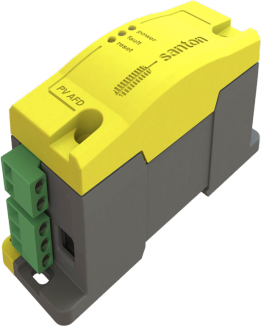 THE SANTON ARC FAULT DETECTION UNIT: ADU Uses the frequency characteristics to determine arcing conditions. With a round transformer the analogue noise signal is fed into the electronics. The analogue signal is filter to specific bandwidth for arcing. The analogue signal is sampled by a Digital Signal Processor (DSP). The sampled signal profile is checked with an algorithm to determine if an arcing event is occurring. In case arc found: Buzzer sounds Red fault LED blinks Relay output changes state Arc fault reset possible with small pin
