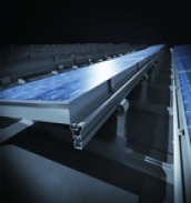 The variable height of the system mounts enable a level PV array even if the roof surfaces are uneven.