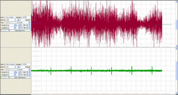 ..................... Red Graph shows Arcing condition ..................... Green graph shows non acring condition